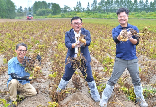 カルビーポテト株式会社(本社:北海道帯広市、代表取締役社長:田崎 一也)とカルビー株式会社(本社:東京都千代田区、代表取締役社長兼CEO:江原 信)は、2025年8月29日(金)に北海道河西郡芽室町の畑で『Calbee Fan With! Project×カルビーポテト じゃがいも収穫ファンミーティングin北海道』を開催しました。