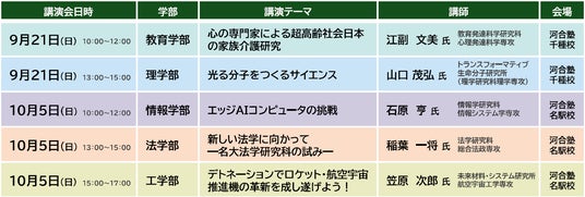 学校法人河合塾と国立大学法人東海国立大学機構名古屋大学は、高校生・高卒生(中学生も可)とその保護者を対象に「行きたい想いが加速する『名大研究室の扉』」を共催いたします。2014年から開催する毎年人気のイベントです。
