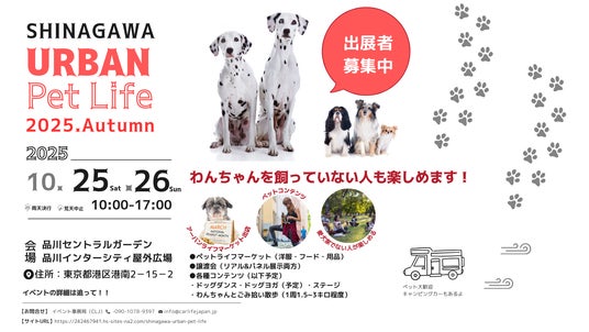 株式会社CarLifeJapan(本社:東京都港区、代表取締役:野瀬勇一郎)は、日鉄興和不動産株式会社と共に、2025年10月25日(土)、26日(日)の2日間、品川セントラルガーデン・品川インターシティ屋外広場にて「Shinagawa Urban Pet Life 2025.Autumn」を開催いたします。