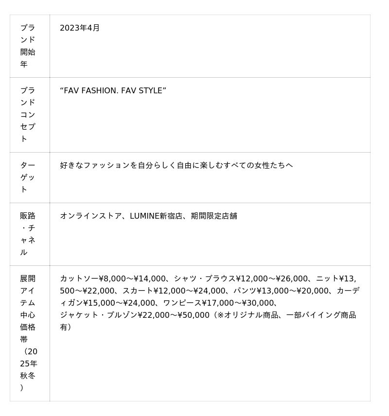 “FAV FASHION. FAV STYLE”をコンセプトに、好きなファッションを自分らしく自由に楽しむすべての女性たちへ向けて、枠にとらわれないスタイルを提案します。