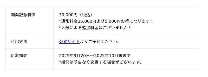 開業キャンペーン詳細