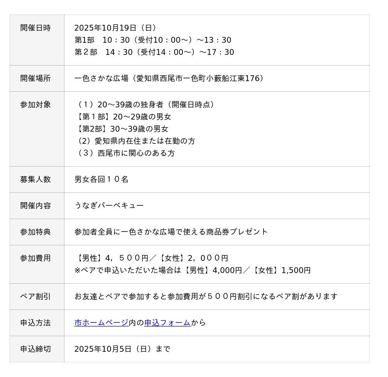 【愛知県西尾市】「にしおde 婚活第4弾」の参加者募集