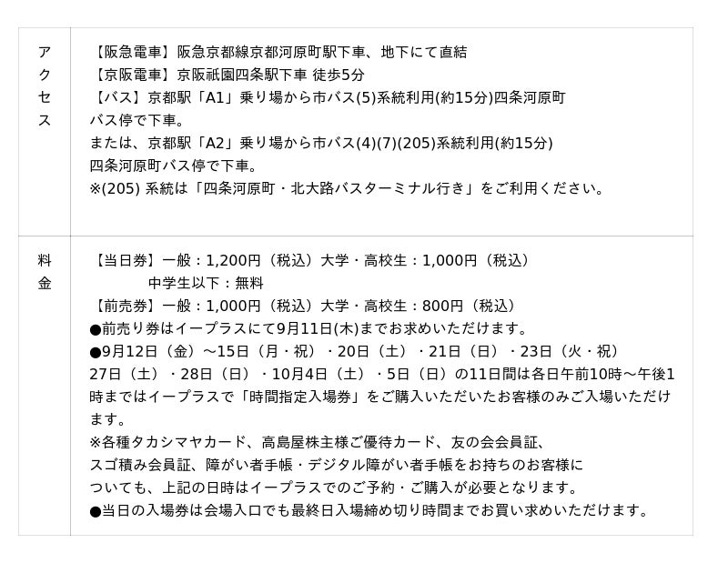 【会 場】 京都高島屋S.C.(百貨店) 7階グランドホール