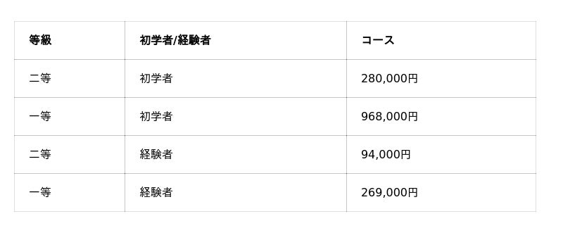 - 提供コース: 二等・一等国家資格取得コース(初学者・経験者向け)