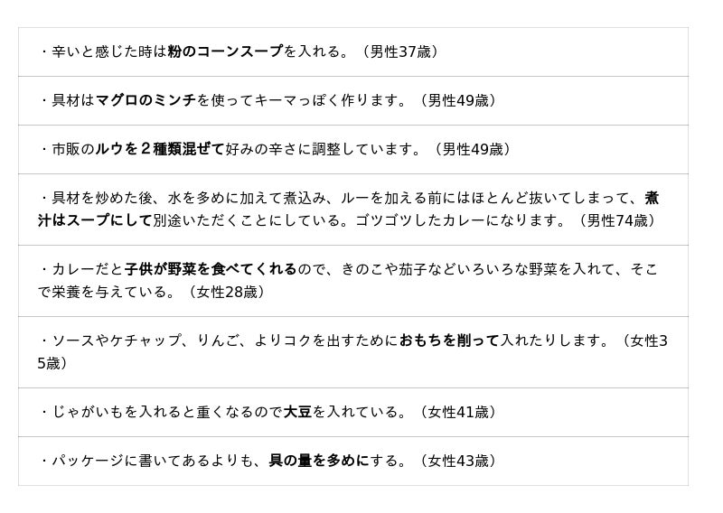 ☆カレーを作るときの工夫やこだわり(全3,261件)