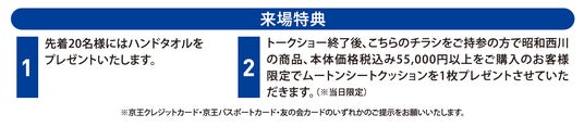 さらにトークショー終了後、チラシをご持参の上、税込55,000円以上の昭和西川商品をご購入いただいた方には、昭和西川のムートンシートクッションをプレゼントいたします(当日のみ)。