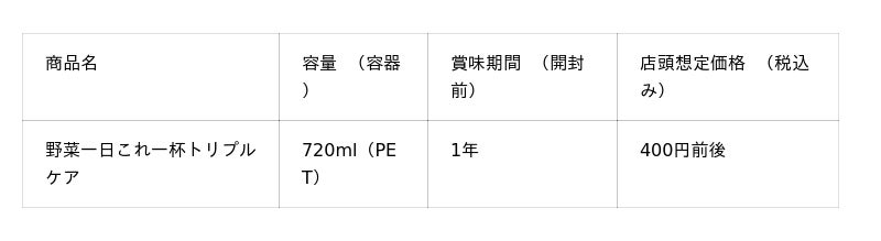 3つの機能性を届け出た「野菜一日これ一杯トリプルケア」新発売