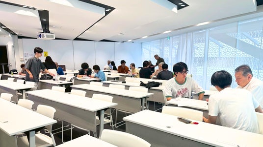 9月5日(金)と10日(水)には、本学茨木総持寺キャンパスにて「高齢者スマホ教室 - 事前予約会ver.」を実施。通常の「スマホ教室」と同様に学生がサポートを行いながら参加者は一緒に万博IDを作成し入場チケットの連携、希望するパビリオンの打ち合わせなど、当日に向けて準備をします。