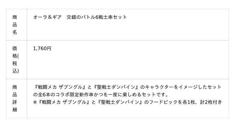 - 『聖戦士ダンバイン』 『戦闘メカ ザブングル』コラボ限定 新作串かつを堪能できる3セットが登場!