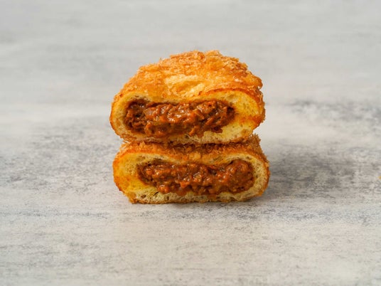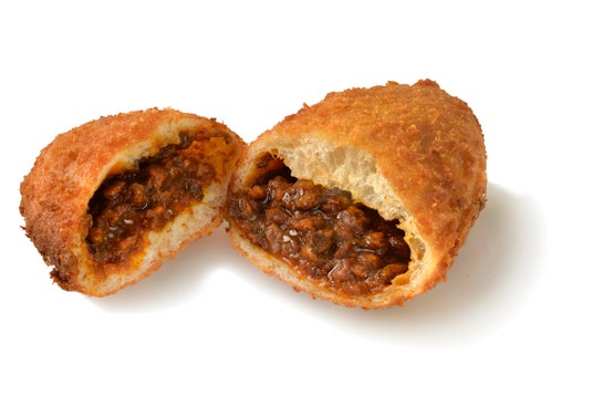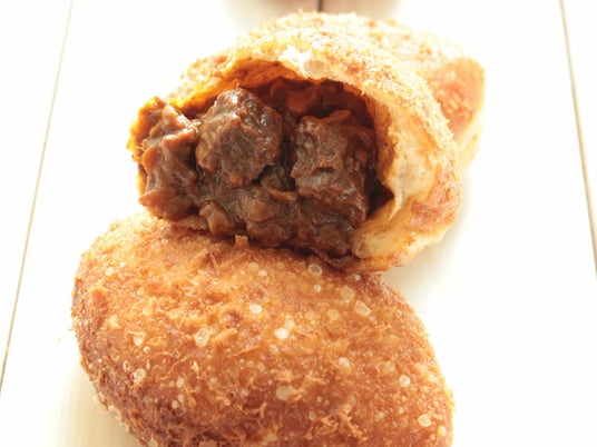角切り牛肉とたっぷり野菜を10種のスパイスで煮込み、5時間以上かけて仕上げた深い旨みの自家製カレーを包み込んだ絶品カレーパン。