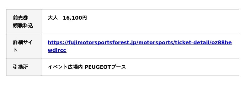 そんなPeugeotファンにオススメの自由観戦エリア機能に特典が付いたチケットです。