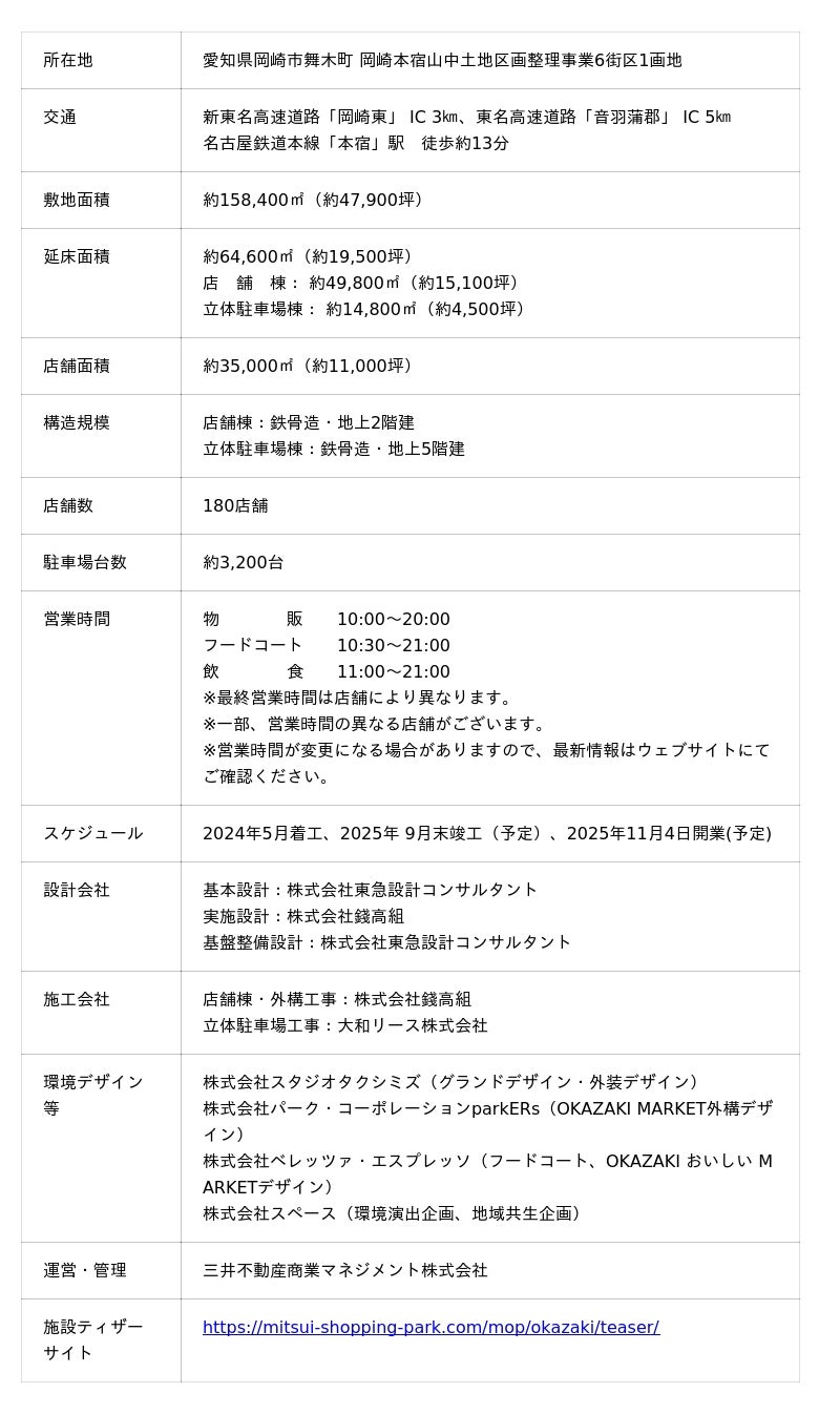 <添付資料1.>「三井アウトレットパーク 岡崎」計画概要