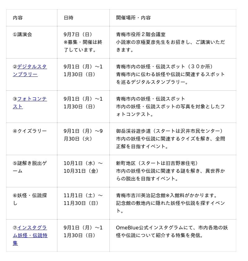 「青梅の妖怪と伝説と七つの不思議」の開催について