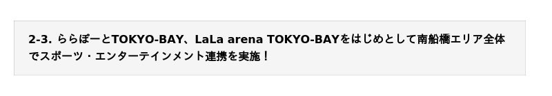 2.【南船橋エリアがバージョンアップ!】北館I期エリアの開業に合わせて、周辺施設とともにスポーツ・エンターテインメントと連携した取組みを実施!