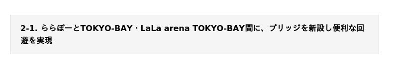 当社グループは、1981年にららぽーとTOKYO-BAYを開業以来、経年優化の理念のもと40年以上にわたり南船橋エリアの街づくりに携わってまいりました。大型多目的アリーナ「LaLa arena TOKYO-BAY」や、ららぽーとTOKYO-BAY北館I期エリアの開業により、南船橋エリアに位置する各施設が連携しながらより一層スポーツ・エンターテインメント連携を実施していきます。