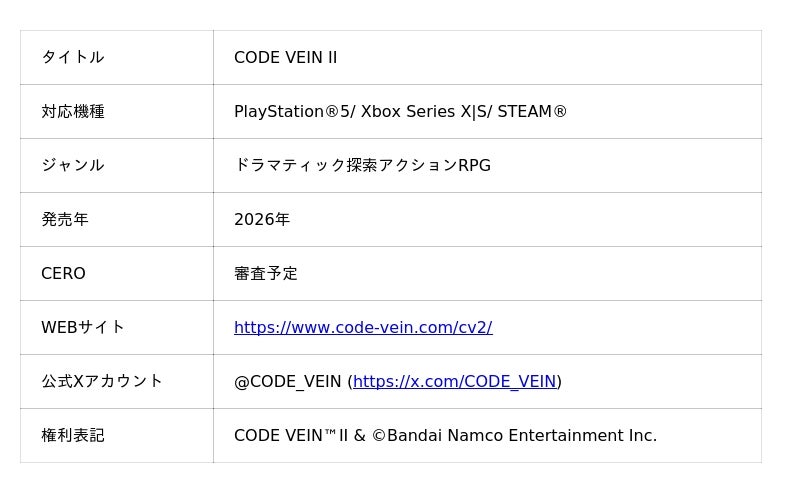 2026年発売予定の『CODE VEIN II』について、「東京ゲームショウ2025」の出展内容および