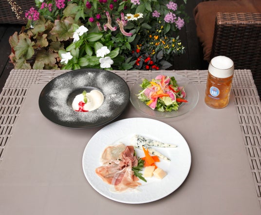 会場のテラスに面したレストランが、このイベントのためにスペシャルメニューを考案いたしました。秋を感じるテラス席で、イベント限定のフードをお楽しみください。