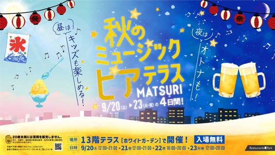 オトナもキッズも楽める! 秋のミュージックビアテラスMATSURI。9/20(土)~23(火・祝)の4日間、新宿高島屋13階テラスで開催。