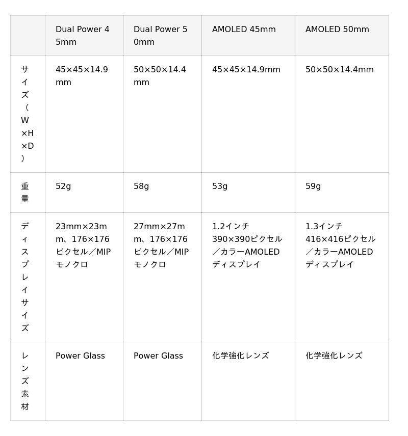 - 有機ELディスプレイの「AMOLED」と、ソーラー充電搭載「Dual Power」の2タイプ展開