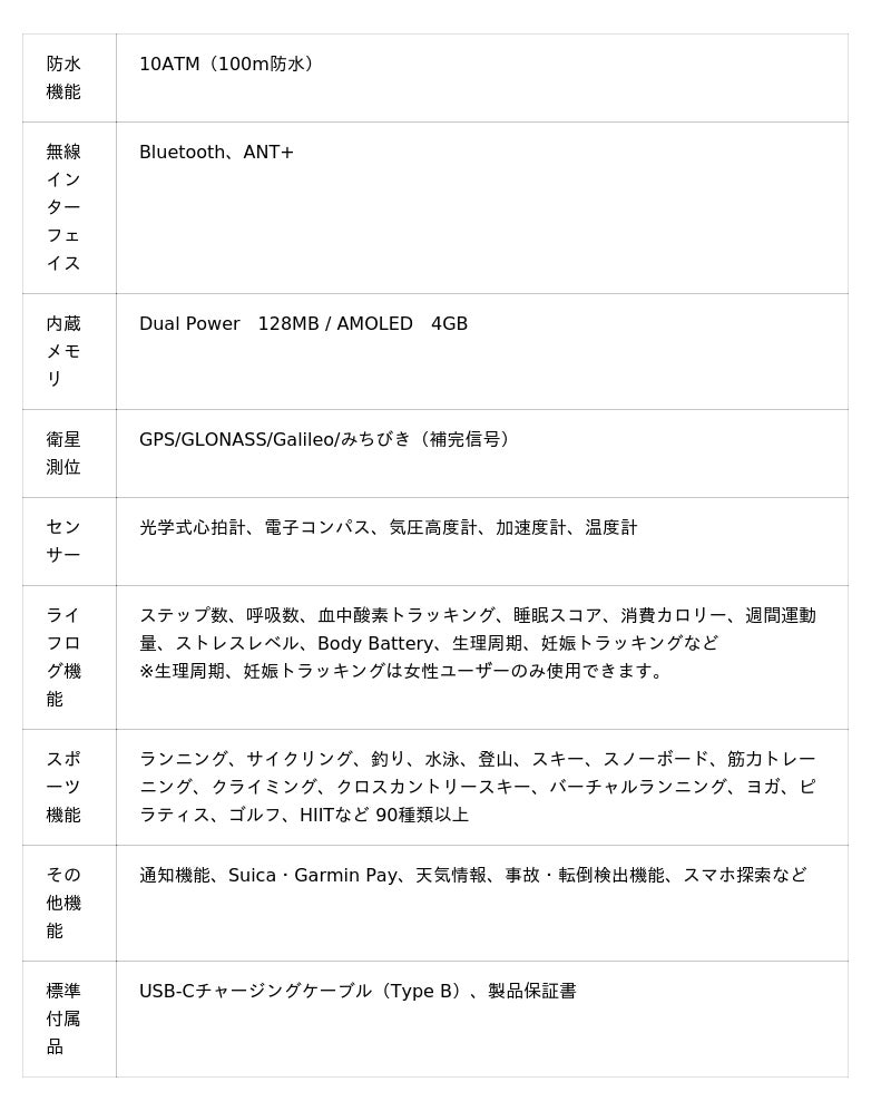 ・週間運動量やフィットネス年齢など、健康的な日常生活をサポートする高性能な計測機能も備え、日々のスマートウォッチとしても活躍します。