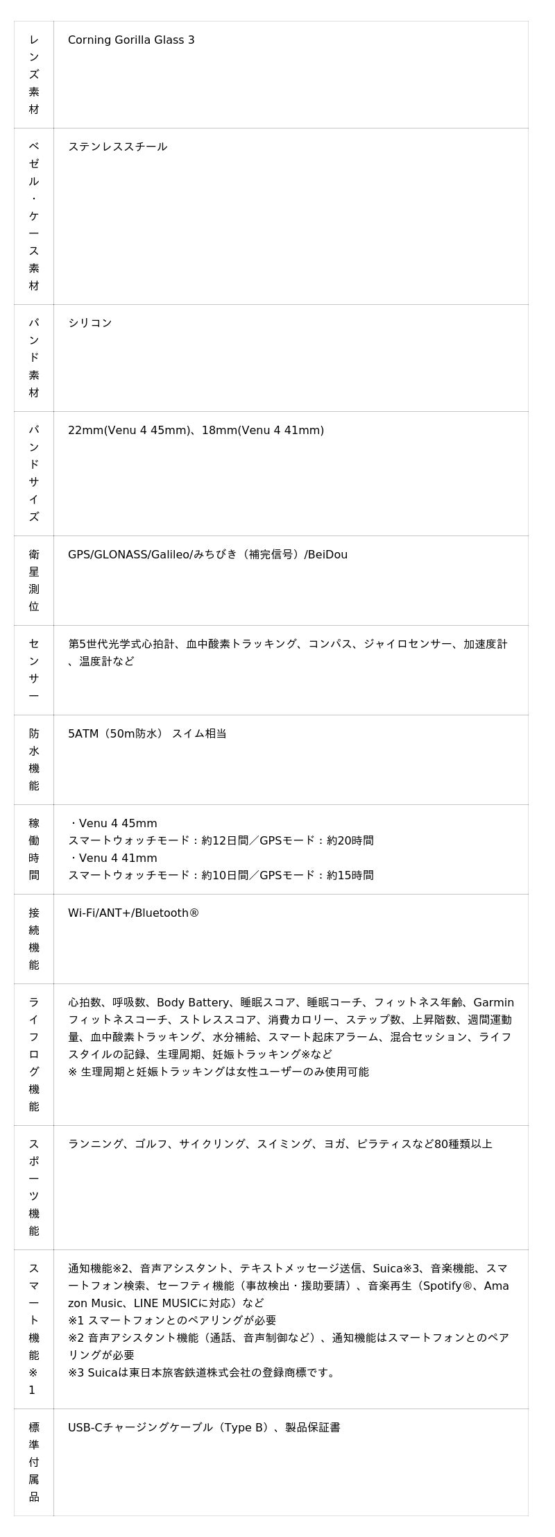 Venu」シリーズは、豊富な健康モニタリングやフィットネス機能に加え、日常生活をスマートにサポートする通知機能やSuica※対応のキャッシュレス決済機能などを搭載。鮮やかなAMOLEDディスプレイと高い操作性、仕事とプライベートどちらにもマッチするスタイリッシュなデザインで、初めてスマートウォッチを使う方から、より充実した機能を求める方まで、幅広い支持を得る人気のGPSスマートウォッチです。