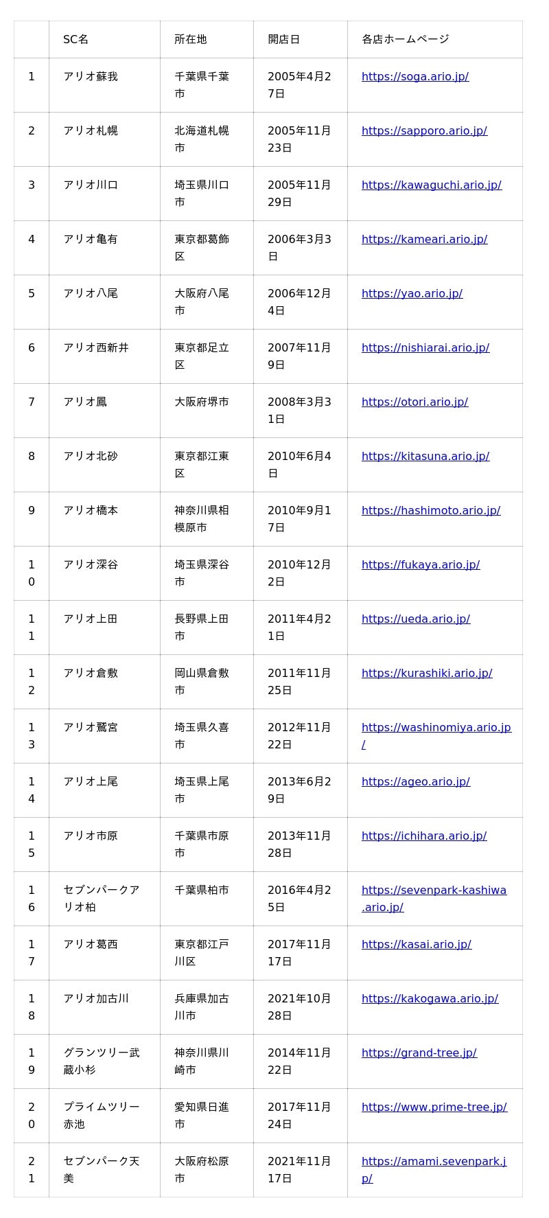 (グランツリー武蔵小杉・プライムツリー赤池・セブンパーク天美)