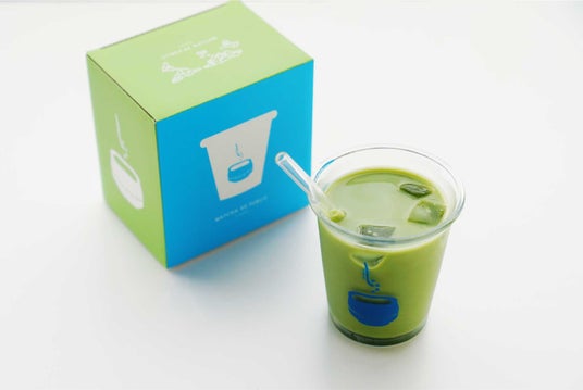抹茶ラテをガラスのインク瓶に入れるファッショナブルな商品。