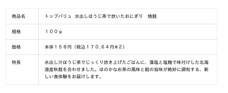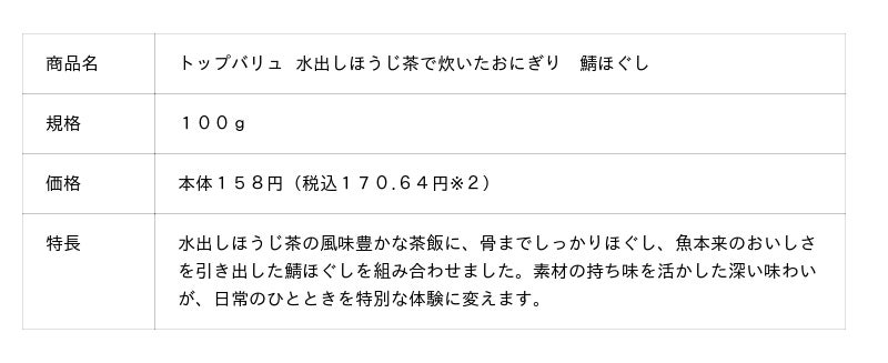 トップバリュ「水出しほうじ茶で炊いたおにぎり」新発売