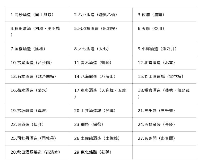 【蔵元】29蔵(詳細は「蔵元一覧」参照)