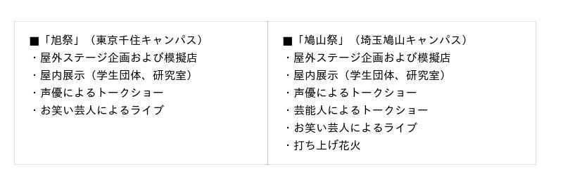 「旭祭」(東京千住キャンパス)・「鳩山祭」(埼玉鳩山キャンパス)11 月1 日(土)・2 日(日)