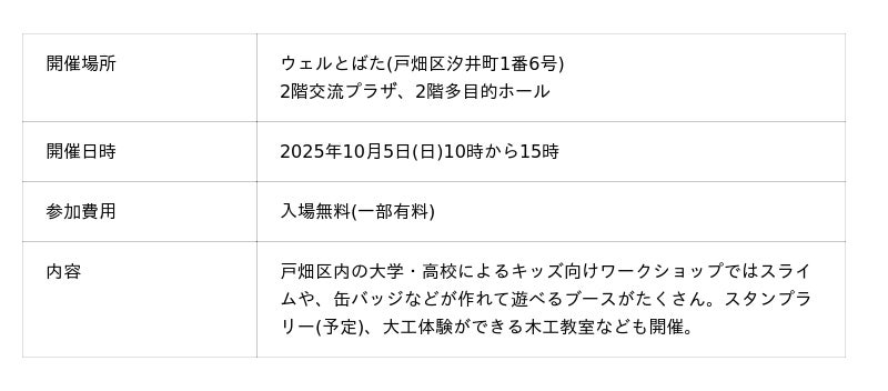 10月は「とばたマンス!」として、戸畑区内で様々なイベントが開催されます。そのキックオフイベントとして、10月5日(日)に戸畑区大学・高校合同学園祭「文教祭」をウェルとばたと汐井町公園の2会場で開催します。その他にも、戸畑区中央通り周辺でマルシェなどの楽しい催しがいっぱいです。皆さん、ぜひ、戸畑に遊びに来てください!