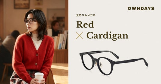 商品URL:https://www.owndays.com/jp/ja/news/autumn-styling#redcardigan