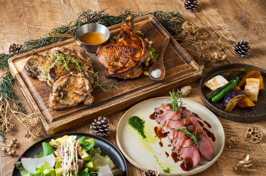 全国の地鶏・銘柄鶏のコンテストで優秀賞に輝く「ありたどり」を使用したローストチキンは、肉の旨みを最大限引き出すために数種類のハーブとガーリックと塩でマリネし中心は低温調理でじっくり、表面は当店自慢の炭火で焼き上げ香ばしく仕上げました。糸島バジルとアップルソースプライムビーフの炭火焼やガーリックライス、ポキサラダなど豪華ディナーセットでご用意。ご家族やご友人とのクリスマスパーティーに、ご自宅で寛ぎながらオンアターブルのシェフが腕を振るった特別なクリスマスディナーをご堪能ください。