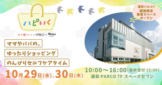 株式会社パルコ(本部:東京都渋谷区/以下 パルコ)は、10月のピンクリボン月間に合わせ、10月29日(水)・30日(木)の2日間、浦和PARCO 7F メディカルモールWelpa(ウェルパ)にて、婦人科検診や健康診断などの受診者を対象に一時保育無料サービスをご提供します。日ごろ仕事や家事・子育てに忙しく、クリニック受診の機会を逃してしまっている女性に、乳がん検診を始めとした健康診断や婦人科検診を受診しやすい機会を提供することで、健康診断や人間ドックの受診率が低い子育て世代の受診を支援する取組みです。