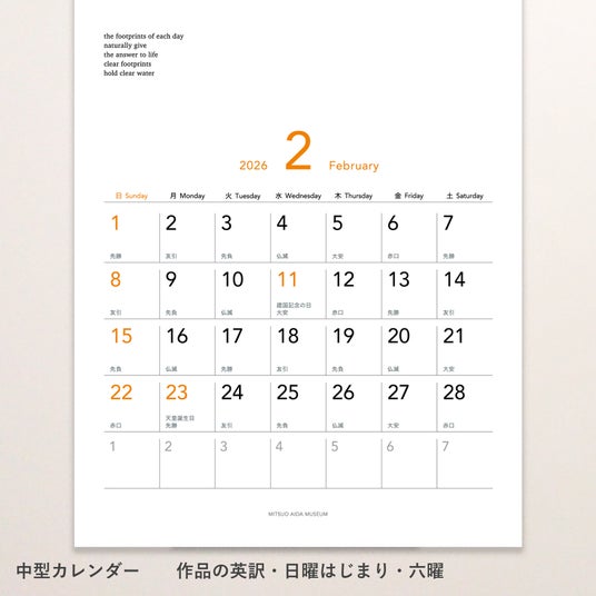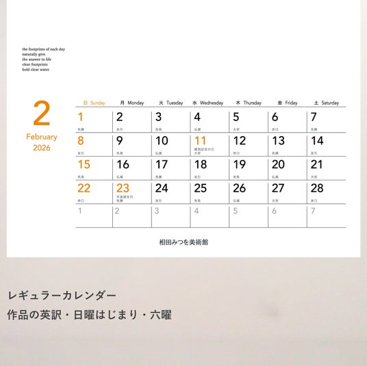 仕様 :12作品収録(各月) 英訳付き 六曜入り