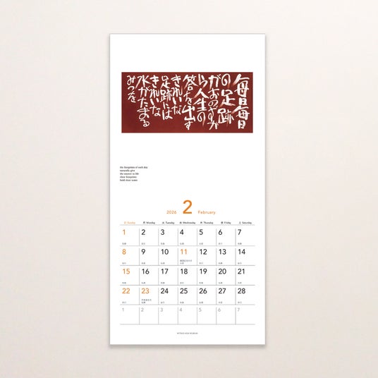 ひと月に1作品を掲載する本カレンダーは、1年を通して12の厳選された相田みつを作品と、2026年のためだけにデザインされた作品『いまここ』をお愉しみいただけます。