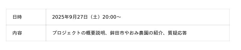 「長洲農園に続き、おみ農園での農業体験を企画できることを嬉しく思います。農家さんのこだわりや暮らしに直接触れられる時間は、参加者の人生に新しい視点を与えるはずです。なかなか経験することのできない貴重な農業体験、ぜひ奮ってご参加ください。」