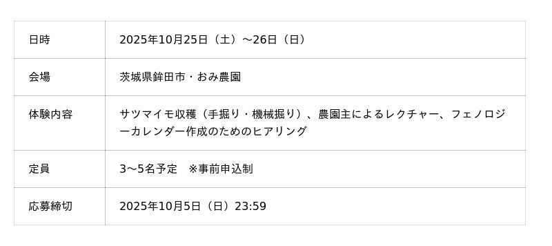 収穫体験や干し芋加工への理解を深めながら、鉾田市ならではの農と暮らしに触れる機会を提供します。