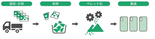 1.回収・分別 → 2.粉砕 → 3.ペレット化 → 4.製造