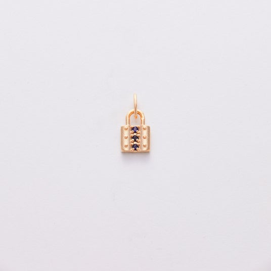商品:K10イエローゴールド サファイア 南京錠 ペンダントトップ