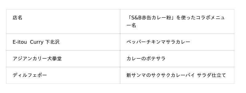 「S&B赤缶カレー粉」と「インドの青鬼」の特別メニュー