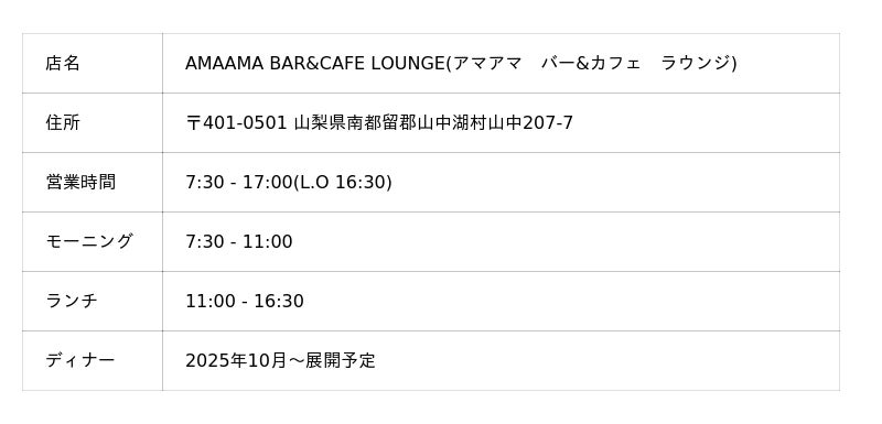 山梨県にある、グルメな方々におすすめな最新おすすめカフェAMAAMA(山中湖)を調査。