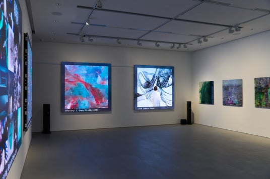 2024年「recursive」展示風景 (C)Rhizomatiks courtesy of KOTARO NUKAGA photo by Osamu Sakamoto