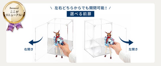 フィギュアケースの開発を手掛ける合同会社リノワ(兵庫県神戸市)は、自社ブランド「HYPE GUARD(ハイプガード)」より、組み立て式フィギュアケースのリニューアル版を発売いたしました。今回のリニューアルでは、前扉を左右どちら開きか選択できる新仕様を採用し、さらに専用パーツによる積み重ね固定を可能にすることで、展示の自由度と安定性を大幅に向上。大切なコレクションをより安全かつ美しく飾るための改良となっています。