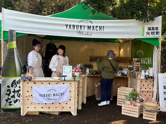 矢吹町の新鮮な農産物や、味噌やドレッシングなどの加工品の販売のほか、爽やかな飲み心地が特徴の純米吟醸「開拓のうた」の販売(コップ販売のみ)など、矢吹町の魅力が満載のブースをご用意しております。「カブトエビと育むやぶきのお米」もお買い求めいただけますので、お気軽にスタッフまでお声がけください。