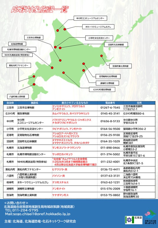 北海道、北海道恐竜化石ネットワーク研究会では、2026年3月までカムイサウルス全身骨格の展示を行っているNHK札幌放送局を加え、道内施設を巡るスタンプラリー事業を開催しています!