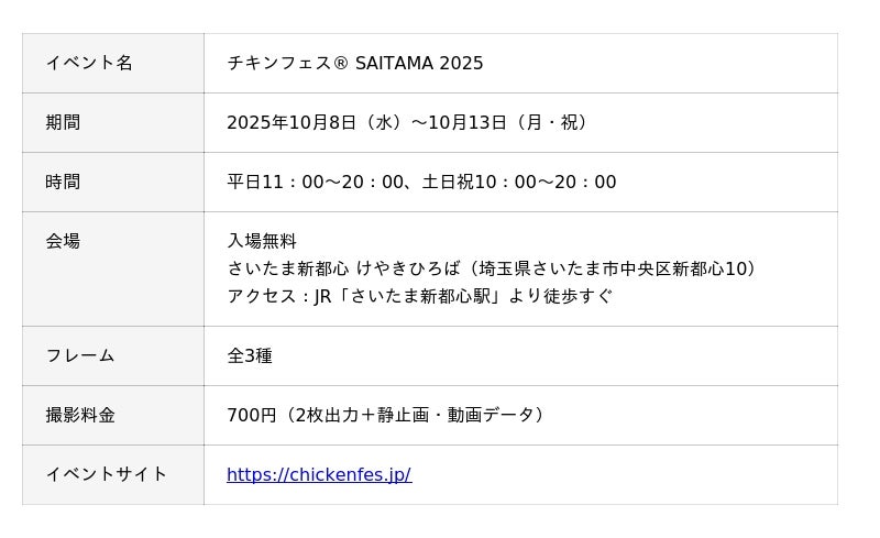 「チキンフェス(R) SAITAMA 2025」イベント概要