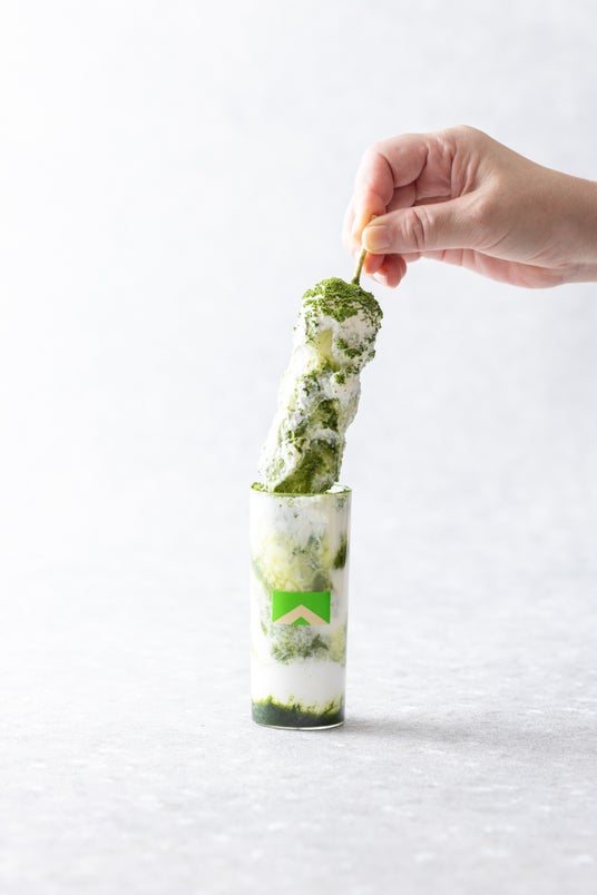 「MOCHIスティック MATCHAティラミス」はもちもちのお団子とクリーミーな抹茶ティラミスがワンハンドで楽しめる贅沢なモチスイーツ。卵を使っていない爽やかなオリジナルマスカルポーネソース