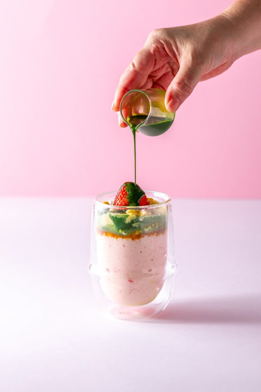 鎌倉で人気のMATCHAラテが銀座に登場!いちごのコンポートをピュレにした贅沢ないちごソースと宇治抹茶のマリアージュが楽しめる、カラフルな大人気ごちそうMATCHAドリンクです。