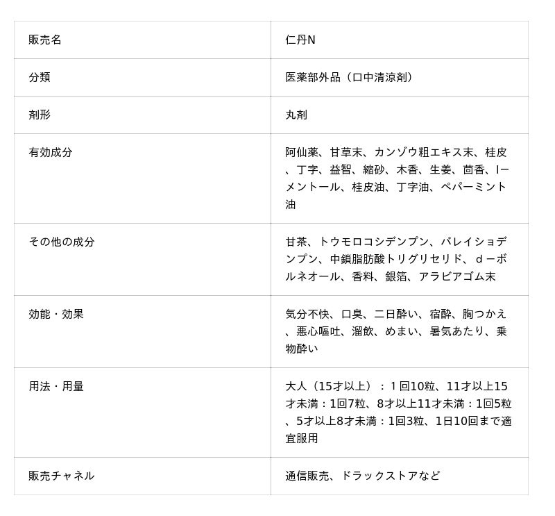 「銀粒仁丹」は、医薬部外品の口中清涼剤です。気分不快、口臭、二日酔い、宿酔、胸つかえ、悪心嘔吐、溜飲、めまい、暑気あたり、乗物酔いの効能効果があります。1粒に厳選された16種類の生薬を配合し、表面を銀箔でコーティングすることにより保存・携帯性を高めています。 当社は、「仁丹」で培った伝統の生薬技術と製造方法を今もなお守り続けています。